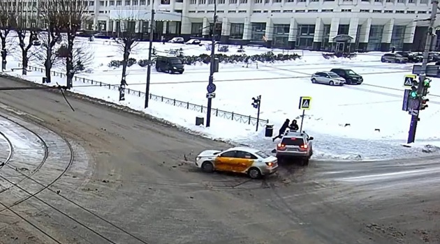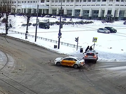В Перми машина сбила дорожный знак, отправивший в нокаут пешехода. Видео
