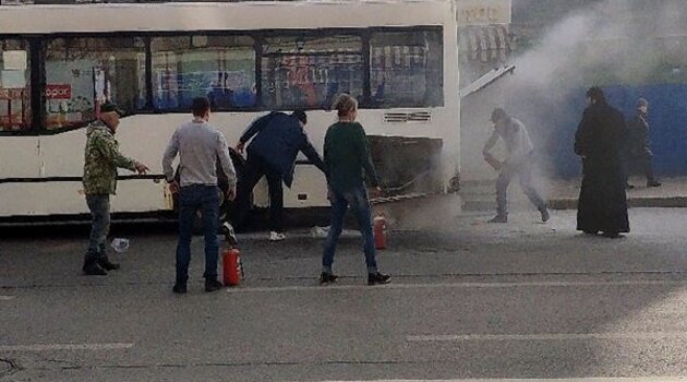 На Центральном рынке в Ростове загорелся автобус с пассажирами