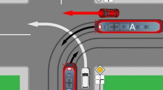 Изучаем ПДД. Каким ТС обязан уступить дорогу белый автомобиль?