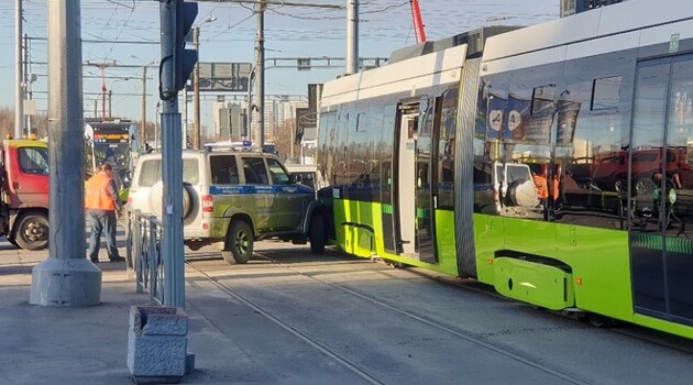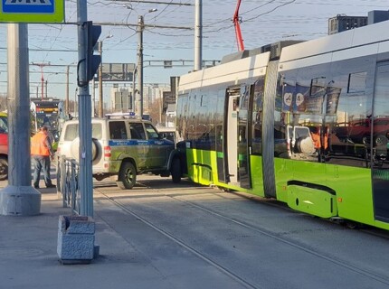 Столкновение полицейской машины и трамвая в Петербурге попало на видео