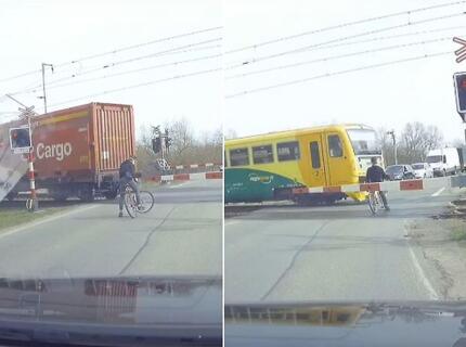 Велосипедист чудом «разъехался» с поездом в Чехии