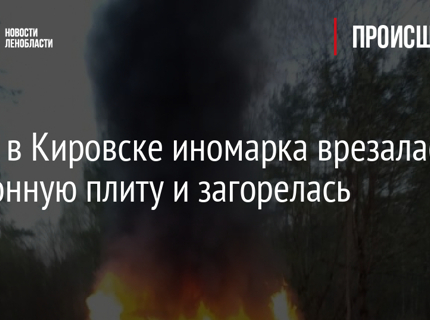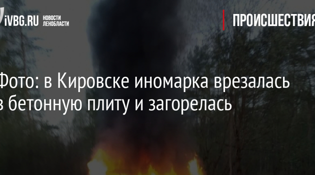 Фото: в Кировске иномарка врезалась в бетонную плиту и загорелась