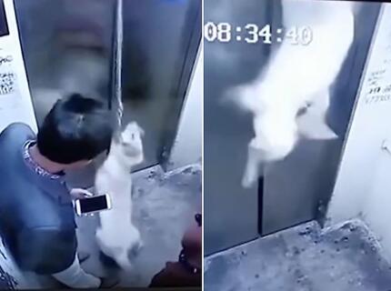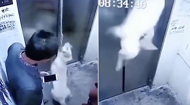 Беспечные жильцы не стали помогать псу, повисшему на поводке в лифте