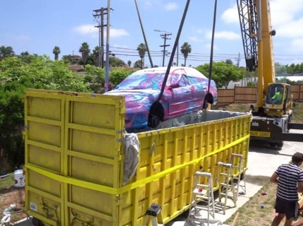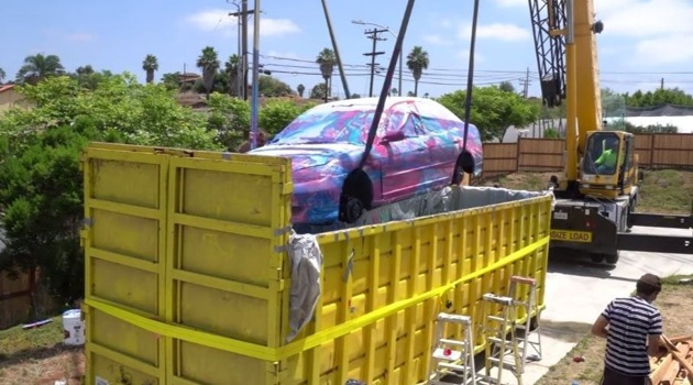 Видео: блогер покрасил Honda Civic, опустив его целиком в гигантский контейнер с водой