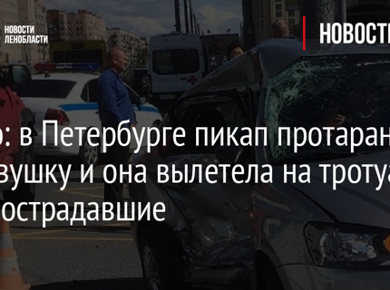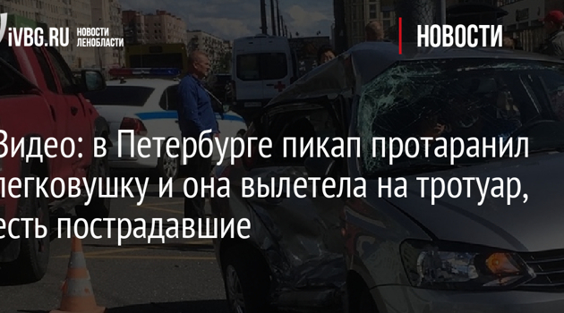 Видео: в Петербурге пикап протаранил легковушку и она вылетела на тротуар, есть пострадавшие