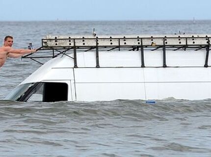 Мужчина бросился в море за тонущим фургоном ради спасения сигарет