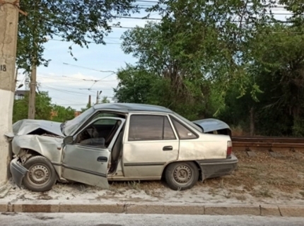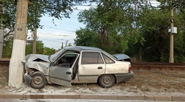 В Волгограде иномарка врезалась в столб освещения