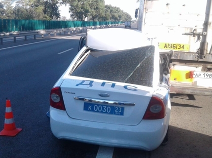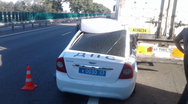 В Краснодарском крае автомобиль ДПС протаранил фуру