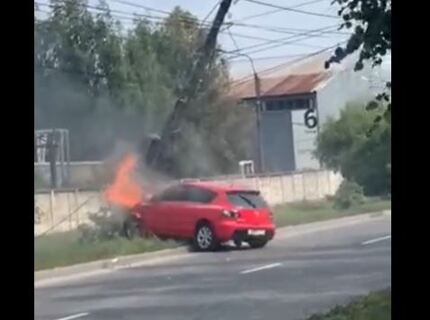 Иномарка врезалась в столб в Сормовском районе и загорелась