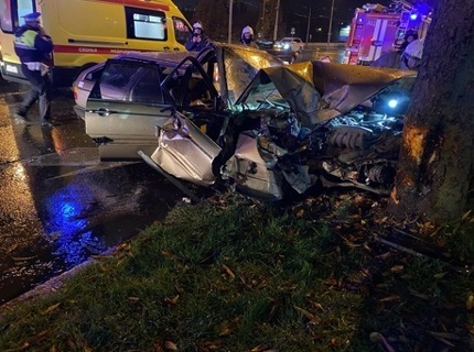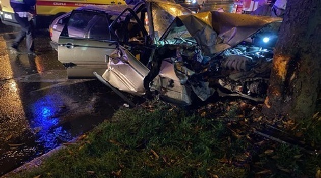 Возле ТЦ "Плаза" легковушка врезалась в дерево, есть пострадавший