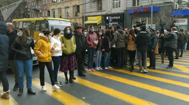 В Ереване автомобиль протаранил перекрывших дорогу протестующих