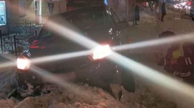 Украинка на внедорожнике разгромила рекламные щиты в Запорожье