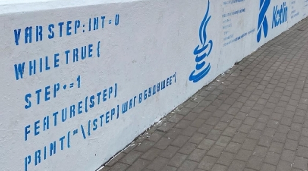 Новый арт-объект: на парапете за ТРК “Родник” написали фразу, зашифрованную на 20 языках программирования