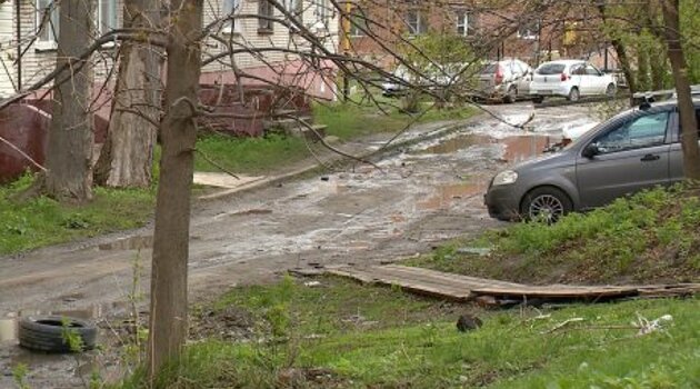 Разбитая дорога в 5-м Виноградном проезде тонет в грязи