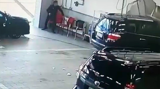 Россиянин на джипе протаранил стену автосалона и попал на видео