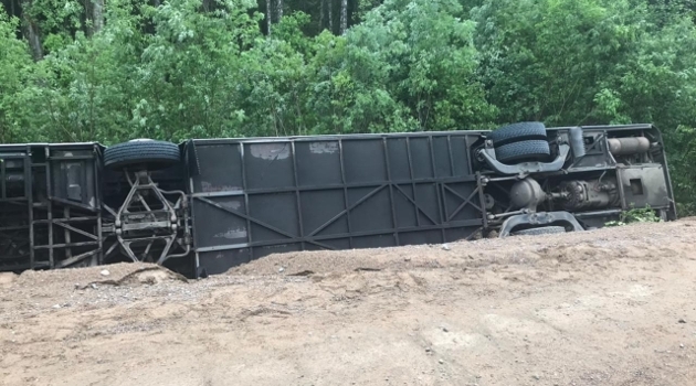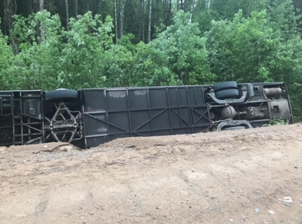 В Ленобласти автобус с 45 пассажирами сполз с грунтовки и перевернулся. Есть пострадавшие