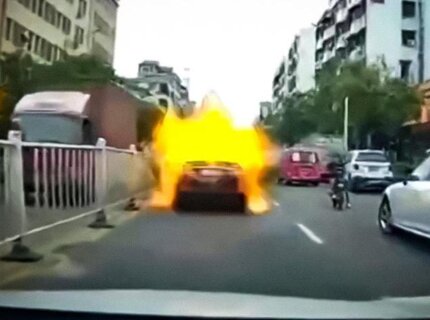 Toyota Camry взорвалась на оживленной улице в Китае. И не один раз