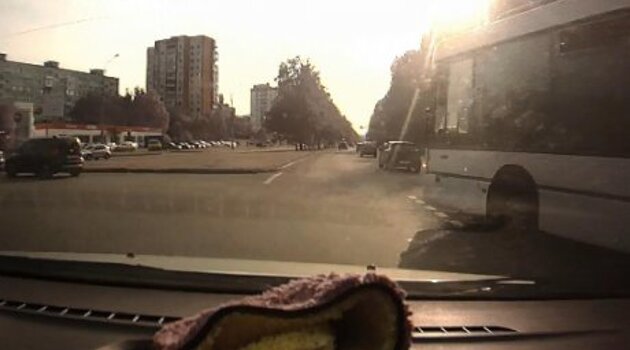 Водитель автобуса № 130 совершил опасный поворот на пр. Строителей