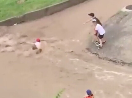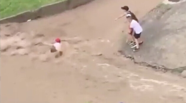 Появилось видео с ребенком, унесенным потоком дождевой воды в Красноярске