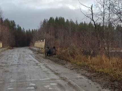 «Я думала это овцы!». В Беломорском районе стадо крупных кабанов бежало перед машиной