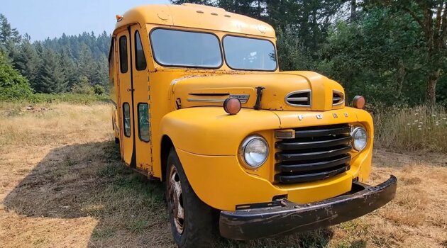 Заброшенный автобус Ford F-5 простоял под открытым небом 25 лет