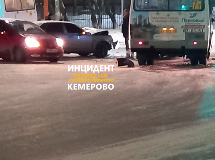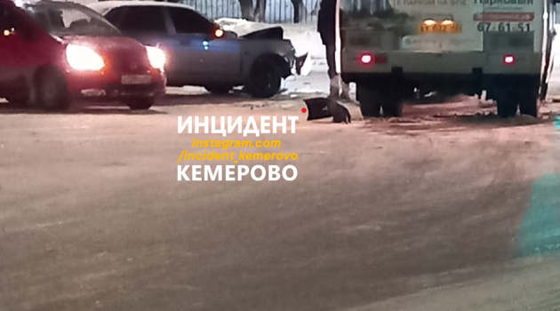 Маршрутка столкнулась с легковушкой на кемеровском перекрестке