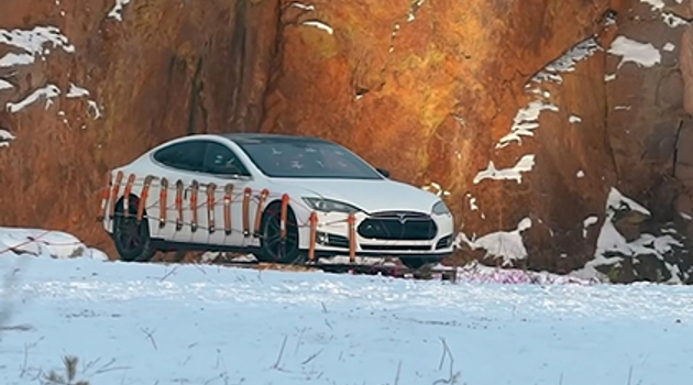 Блогер взорвал Tesla c манекеном Илона Маска из-за дорогого ремонта