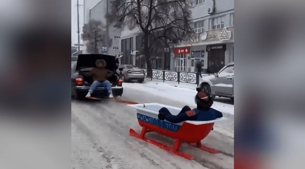 Болельщики устроили заезд на ванне по главному проспекту Екатеринбурга