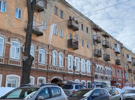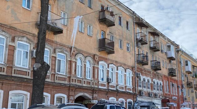Огромная сосулька угрожает припаркованным машинам в центре Саратова