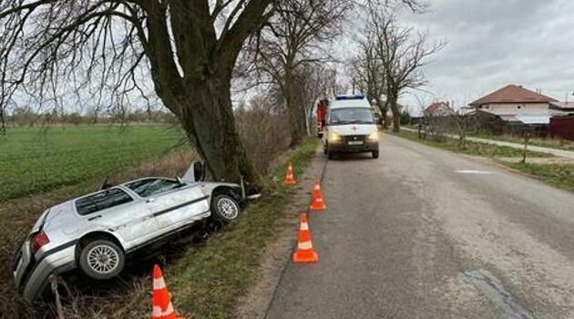 В Гурьевском районе водитель Volkswagen не справился с управлением и влетел в дерево