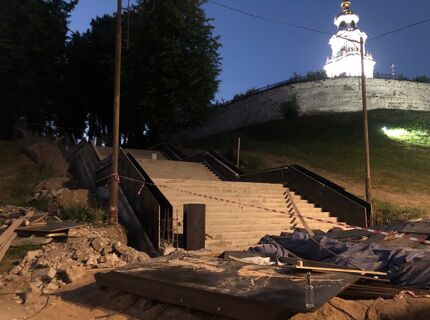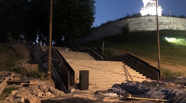 В Костроме реконструируют большую лестницу у цветочных часов на набережной