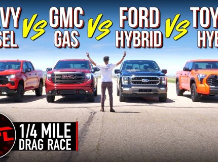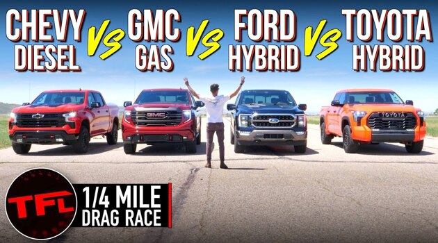 В гонке по прямой сравнили пикапы с бензиновым, дизельным и гибридным моторами
