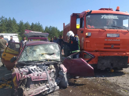 Под Вольском «Лада» столкнулась с самосвалом. Покалеченного водителя доставали из машины спасатели