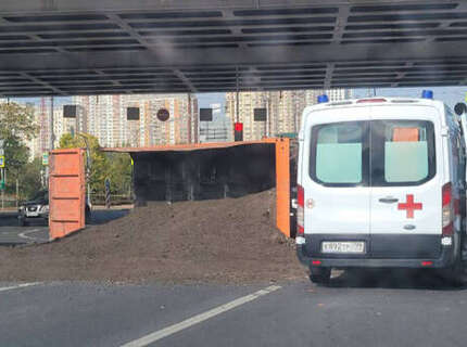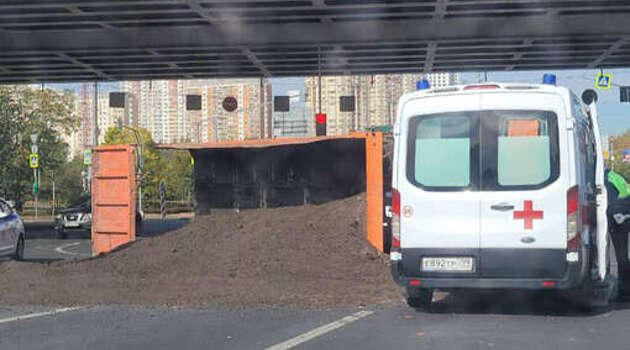 В Москве опрокинувшийся грузовик засыпал перекресток песком