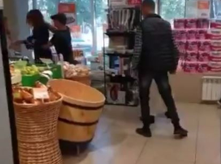 Драка кемеровчанки с сотрудником супермаркета попала на камеру