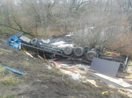 В Сасовском районе вылетел с трассы грузовик Mercedes-Benz