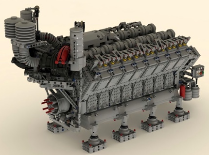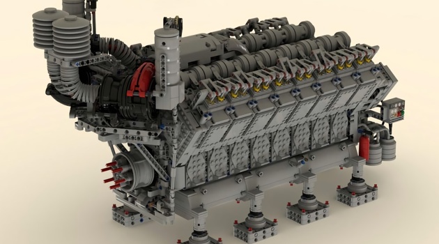 Видео: дизельный двигатель из Lego с работающей турбиной и системой охлаждения