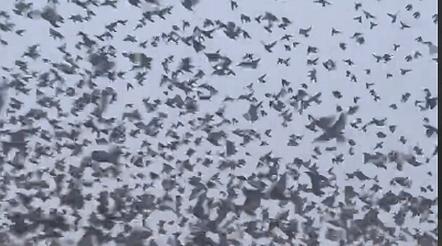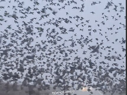 Тысячи птиц пронеслись над дорогой на Кубани