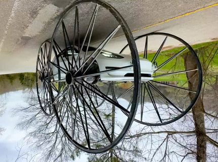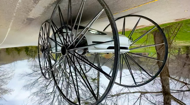 Посмотрите на Tesla, которая едет вверх дном на гигантских колесах