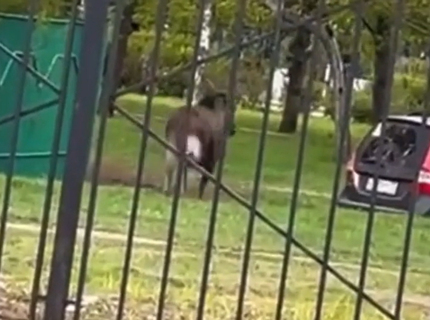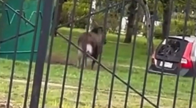 Лось выбежал к людям у жилых домов в Москве и попал на видео