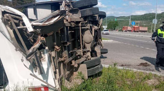 Под Кисловодском Mercedes пробил кузов маршрутной "Газели" и опрокинул ее
