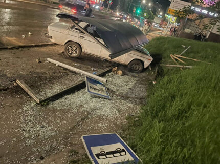 В Саратове автомобиль врезался в остановку и сбил двух человек