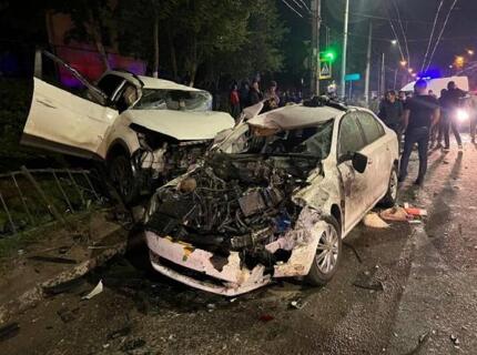 В Новом Уренгое Nissan Patrol на большой скорости снес опору линии электропередач. ВИДЕО