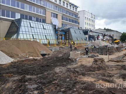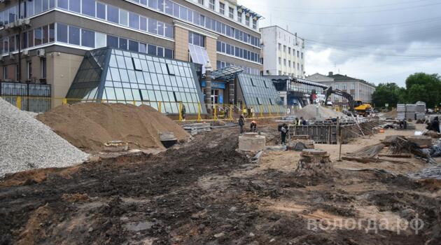 Работы по благоустройству площади у ЦУМа в Вологде ведутся по графику