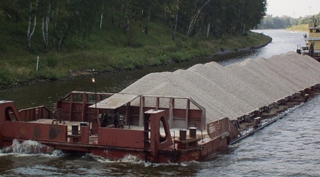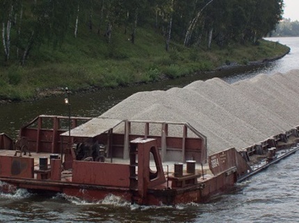 Баржу с щебнем частично затопило на Енисее после удара с подводным препятствием