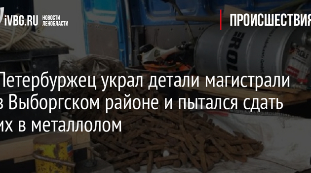 Петербуржец украл детали магистрали в Выборгском районе и пытался сдать их в металлолом