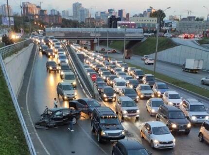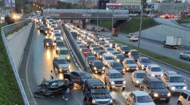 На Октябрьской из-за ДТП встали трамваи и образовалась километровая пробка (фото)