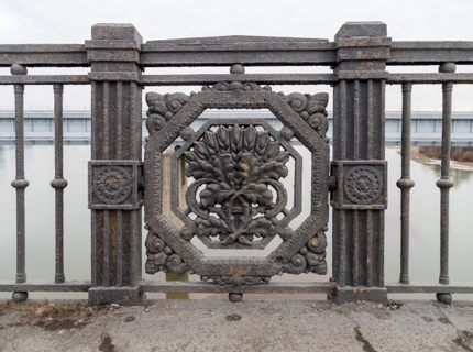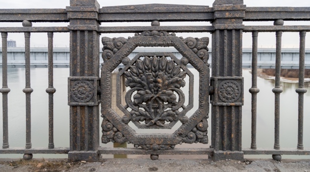 Новые чугунные перила устанавливают на Октябрьском мосту в Новосибирске
