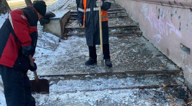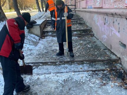 Челябинские подрядчики борются с наледью на тротуарах