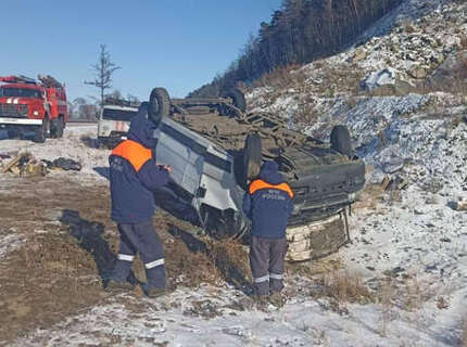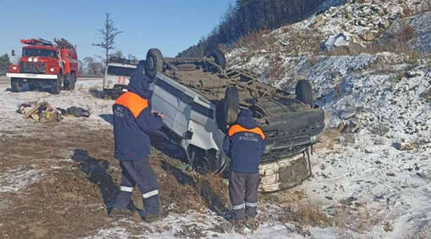 В Бурятии автобус с пассажирами съехал с трассы в кювет и перевернулся